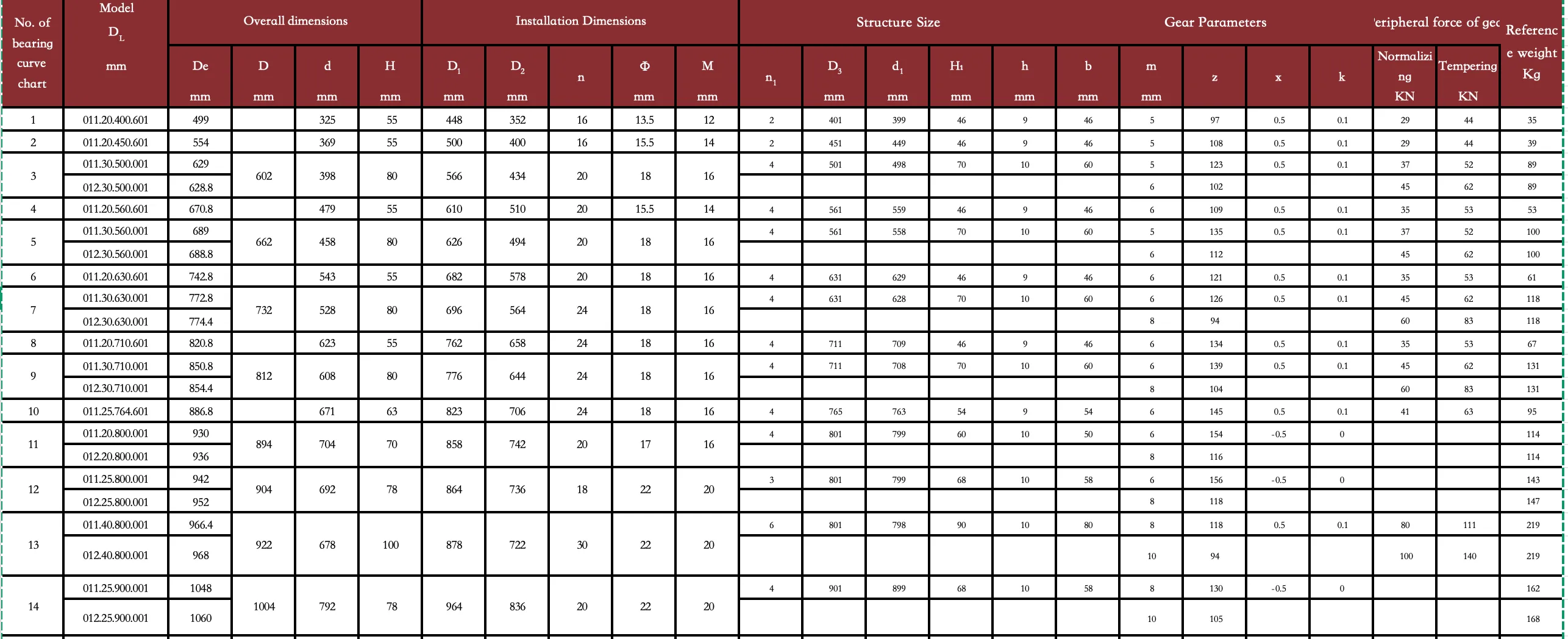 2,nMedium can be changed to thread diameter of threaded holeM, thread depth2M3, The gear circumferential force in the table is the maximum circumferential force, and the rated circumferential force is taken as1/24, "K” is the topping coefficient.