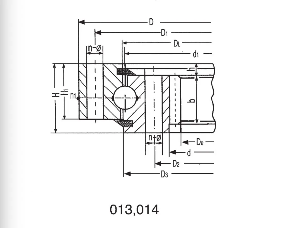 1n1为润滑油孔数。钢球直径<25 油杯M8x1(JB/T7940.1~JB/T7940.2);钢球直径>25油杯M10x1(JB/T7940.1~JB/T7940.2)。根据应用情况用户可指定油孔位置。