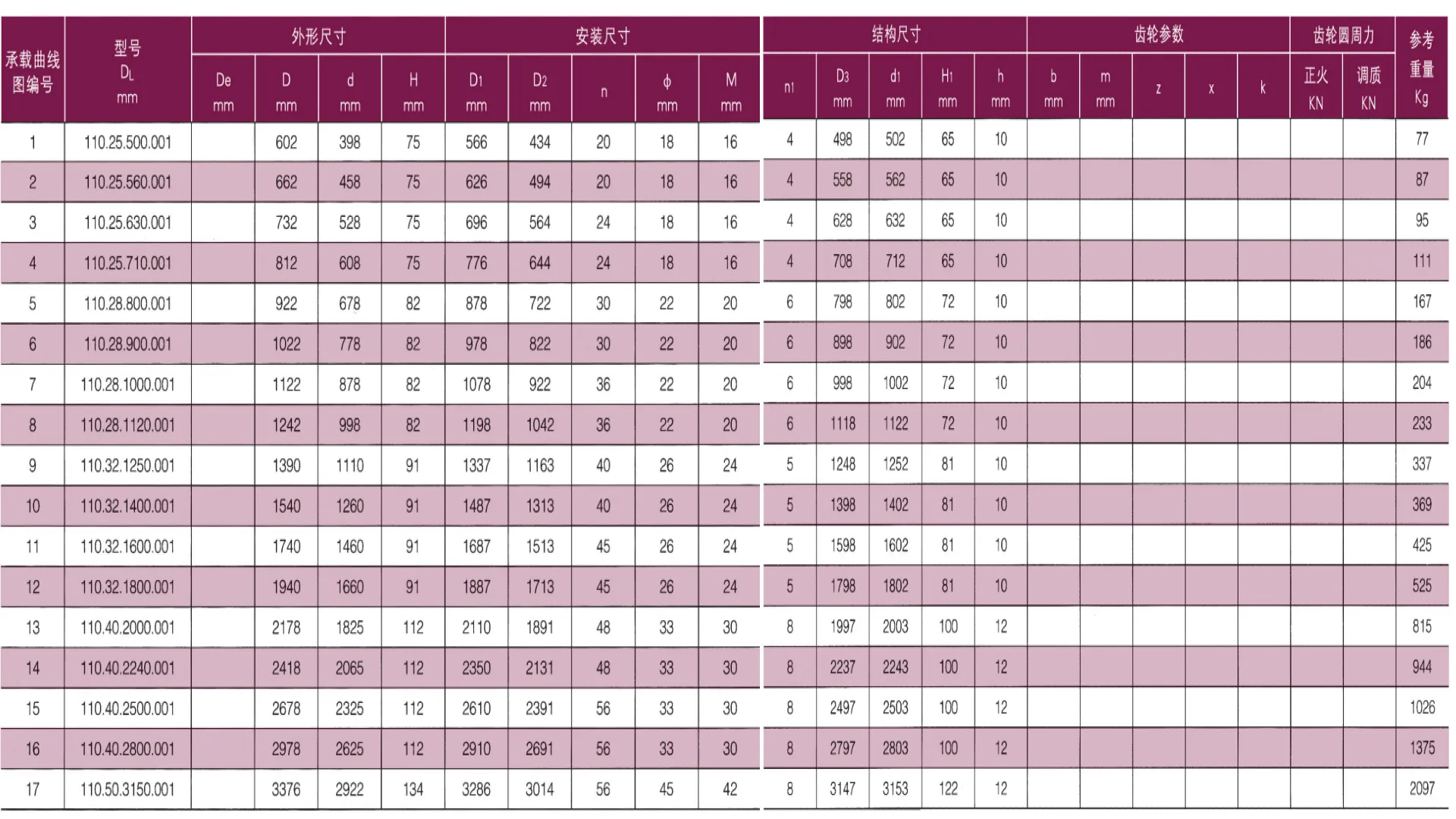 3、本样本中的规格为标准产品,内外径均为自由公差。若主机与回转支承有配合要求,请在合同或合同附件(如技术协议)中注明配合尺寸和精度。