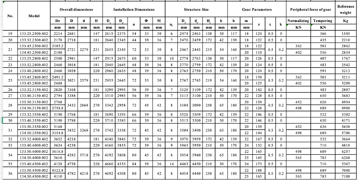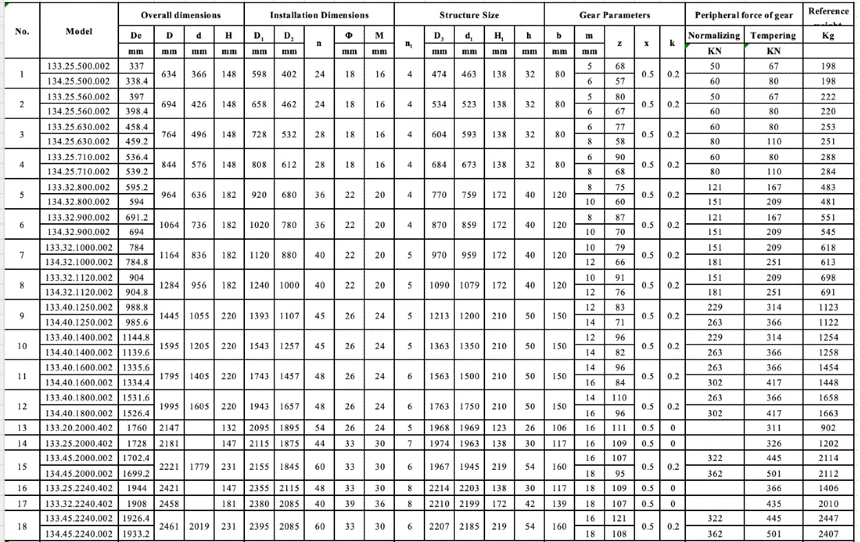 3、表内齿轮圆周力为最大圆周力,额定圆周力取其1/2