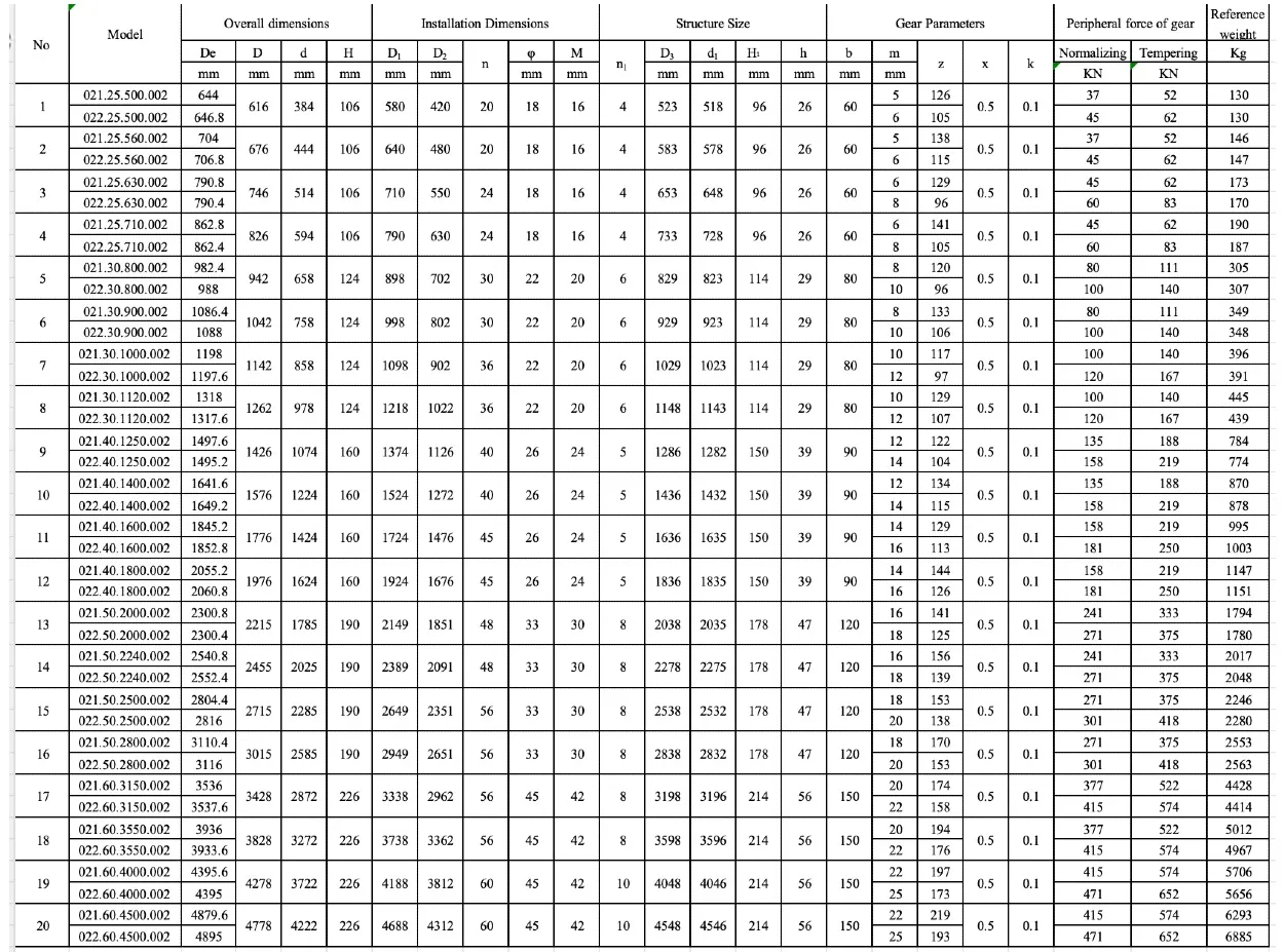 3、表内齿轮圆周力为最大圆周力,额定圆周力取其1/2。