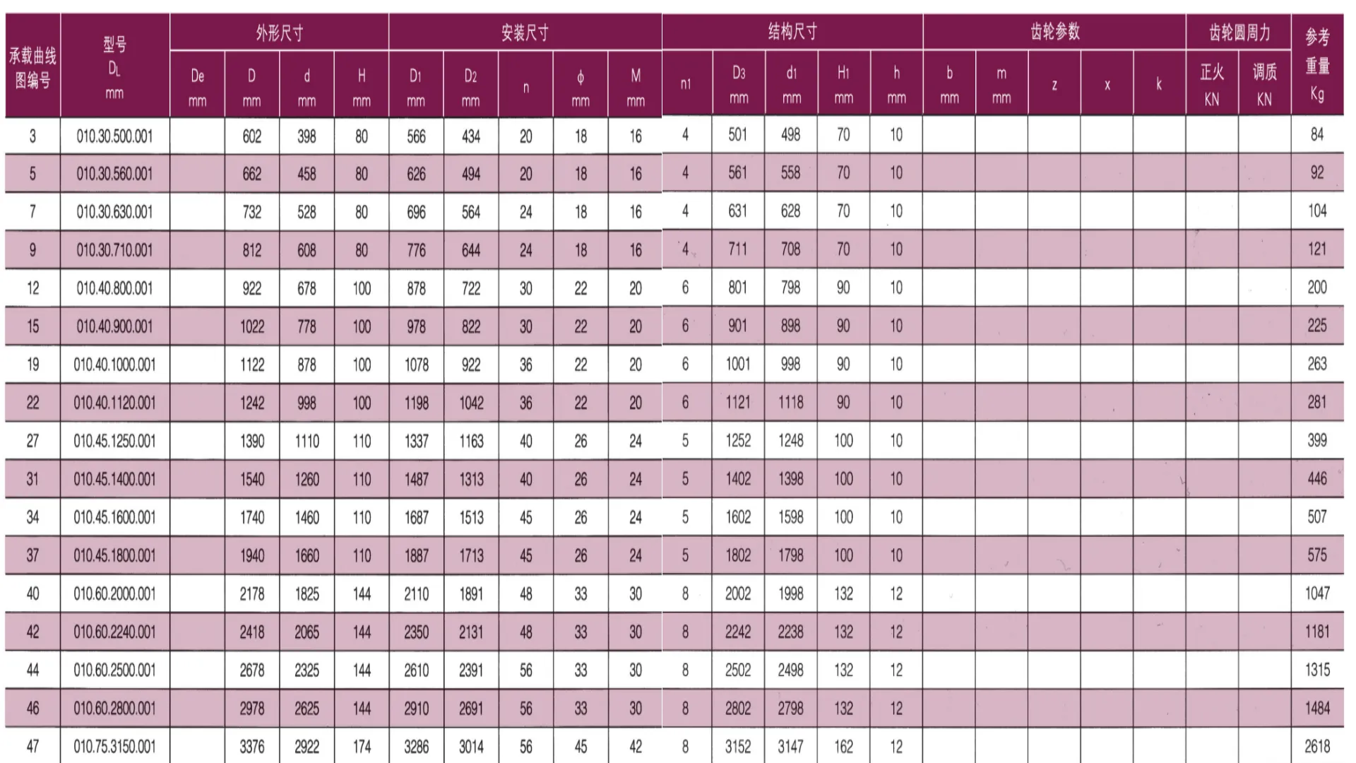 3 、本样本中的规格为标准产品,内外径均为自由公差若主机与回转支承有配合要求,请在合同或合同附件(如技术协议)中注明配合尺寸和精度。