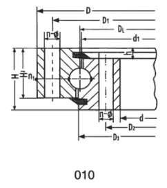 单排四点接触球式转盘轴承由两个座圈组成,结构紧凑,重量轻,钢球与圆弧滚道四点接触,能同时承受轴向力、径向力和倾翻力矩。回转式输送机焊接操作机中小型起重机和挖掘机等工程机械均可选用。